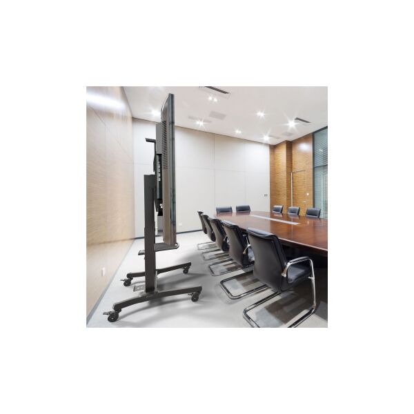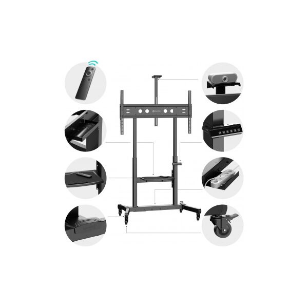ОсобенностиМоторизированная стойка ONKRON TS1991 eLift чёрного цвета станет лучшим помощником для проведения мероприятий с использованием больших экранов, таких как лекции, встречи, конференции и выставки. Эта стойка подходит для большинства современных телевизоров и digital-панелей диагональю 50-100 дюймов.