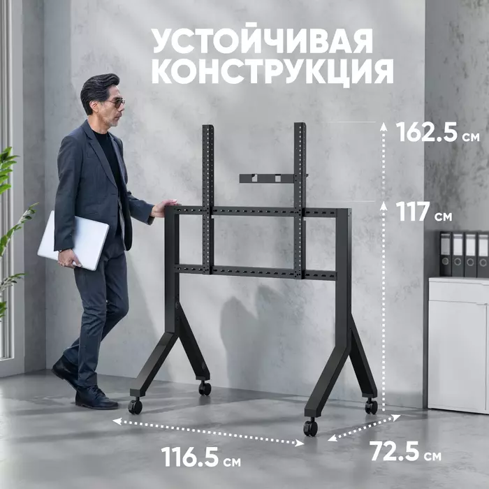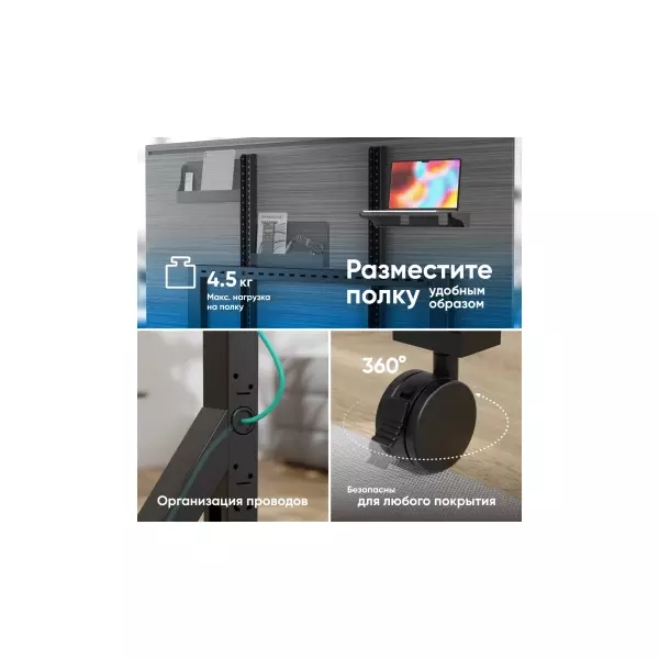 Полка для AV и WEB/PTZ в комплекте; Оснащена колёсами с блокировкой движения; Материал: сталь.