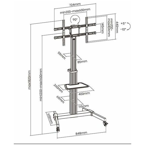 Характеристики Подходит для телевизоров c диагональю 37", 39", 40", 42", 46", 48", 50", 52", 55", 60", 65", 70", 75", 85" Поддержка крепления...