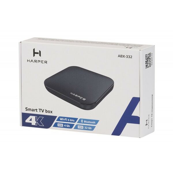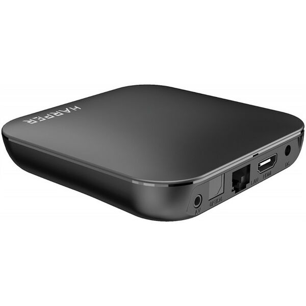 Медиаплеер Harper ABX-332 – это идеально сбалансированное современное и действительно эффективное устройство для работы практически с любым типом контента. Эта ТВ-приставка отличается компактным корпусом, высокой производительностью (работает на базе 4-ядерного процессора и оснащена продвинутым 2-ядерным графическим GPU, позволяющим работать с изображением в разрешении 4K), а также достаточным набором проводных и беспроводных интерфейсов. В частности, пользователям доступны Wi-Fi или LAN подключение, Bluetooth, HDMI, AV, USB 2.0/3.0 и цифровой S/PDIF-выход. Управляется приставка привычной многим системой Android 9.0