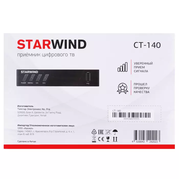 Ресивер STARWIND CT-140 DVB-T2 черный