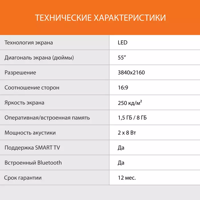 | Диагональ экрана (дюймы) | 55 " |