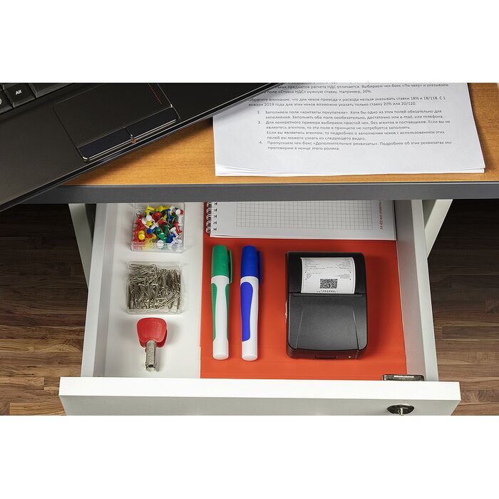 Несмотря на небольшие габариты, у решения полноразмерная кассовая лента длиной 35 м (47мм в диаметре) – это до 200 пробитых чеков на одном мотке ленты.Экономит место