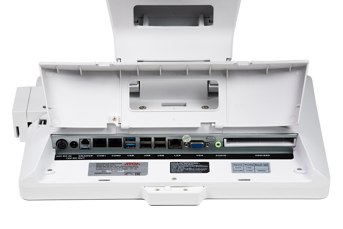 АТОЛ Jazz 15 Pro предназначен для промышленного использования в режиме 24/7 и спроектирован таким образом, чтобы работа оборудования не прекращалась даже в непредвиденных ситуациях. Благодаря металлическому корпусу и устойчивой подставке моноблок надежно стоит на рабочем столе. Влагозащищенный экран не даст жидкости проникнуть внутрь POS-терминала, если на него прольют напиток. Все кабели скрыты в подставке: помимо эстетичного внешнего вида, это гарантирует надежность работы терминала и защиту от случайного отключения кассового оборудования.