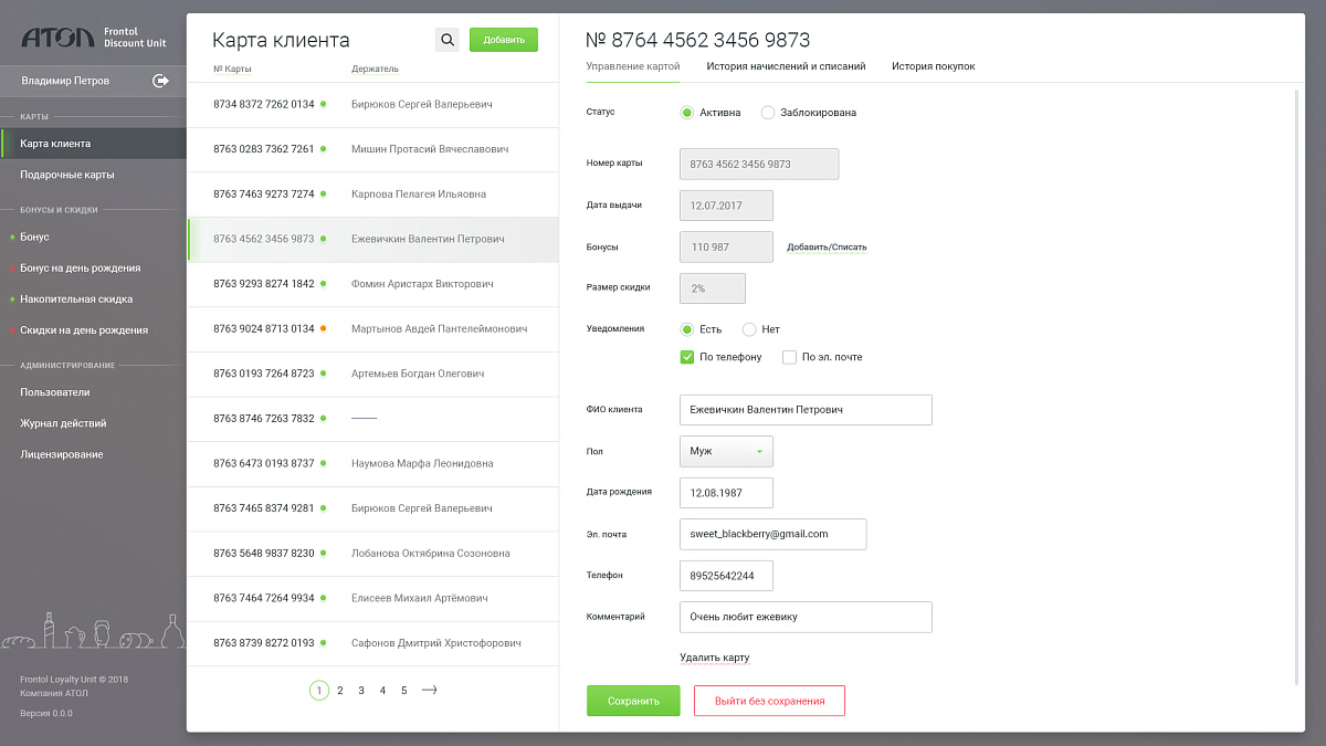 Frontol Discount Unit – мощный и гибкий встроенный механизм позволяет магазину реализовать собственную систему лояльности и привлекать больше клиентов: