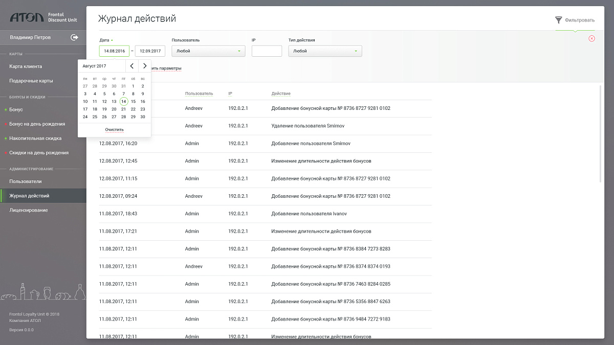 Описание АТОЛ Frontol Discount Unit Рабочее место (1 год)