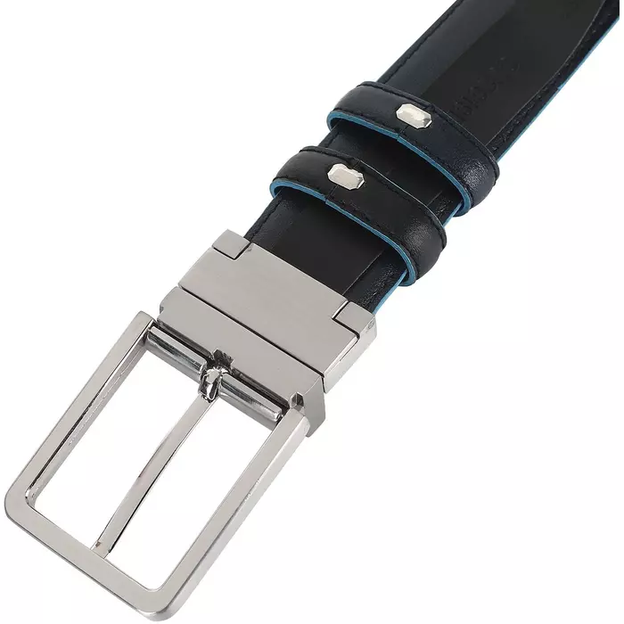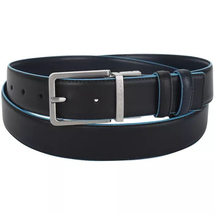 Двусторонний мужской ремень с пряжкой и шпеньком от компании Piquadro, коллекция Blue Square. Натуральная телячья кожа. Фирменная упаковка.