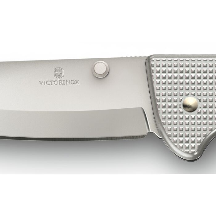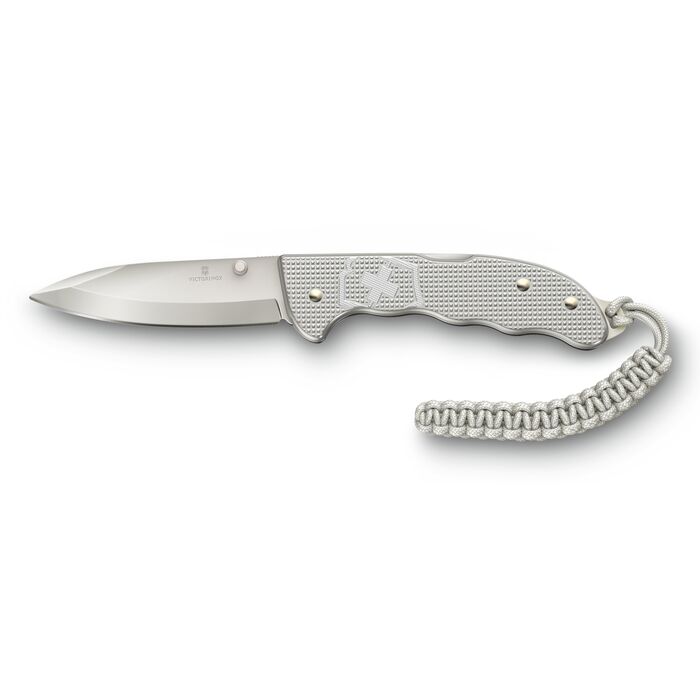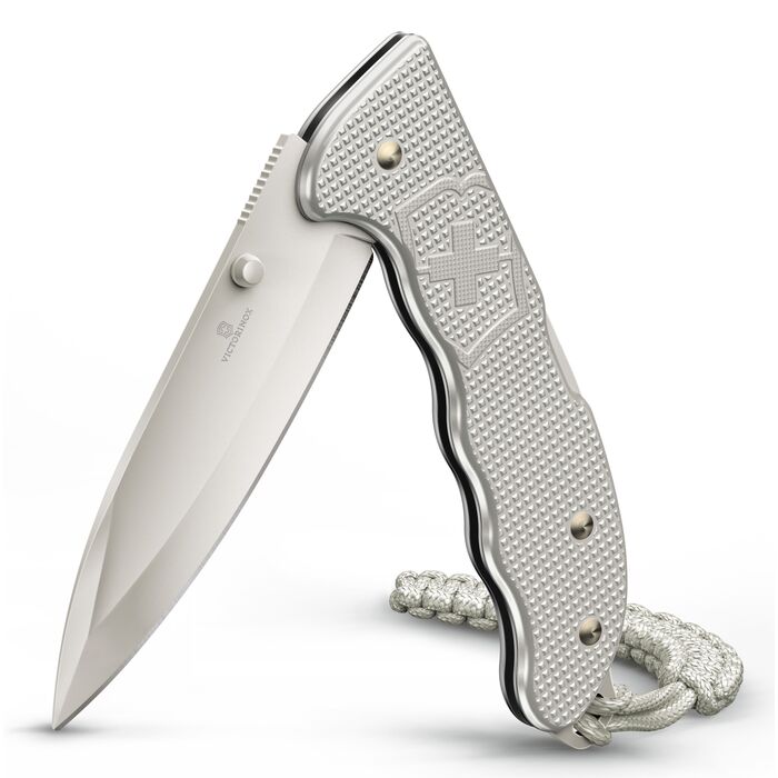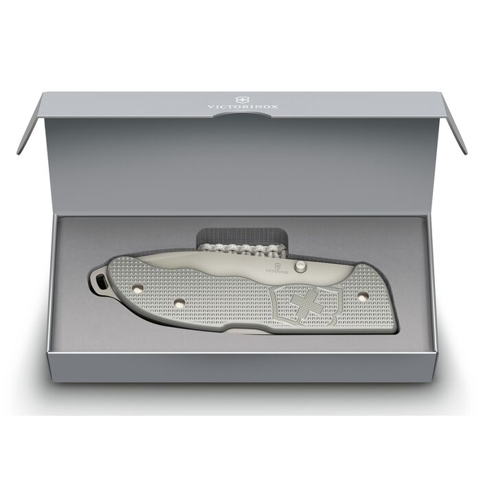 Victorinox Evoke Alox — складной нож, выпущенный в продолжение линейки Victorinox Hunter Pro. Evoke стал более удобным и функциональным, чем его предшественник. Клинок формы drop-point выполнен из устойчивой к коррозии стали, на его поверхность нанесено серое матовое покрытие.Нержавеющая сталь.
