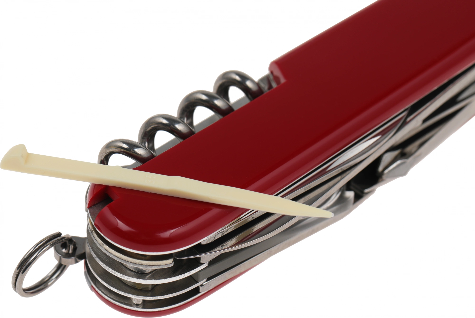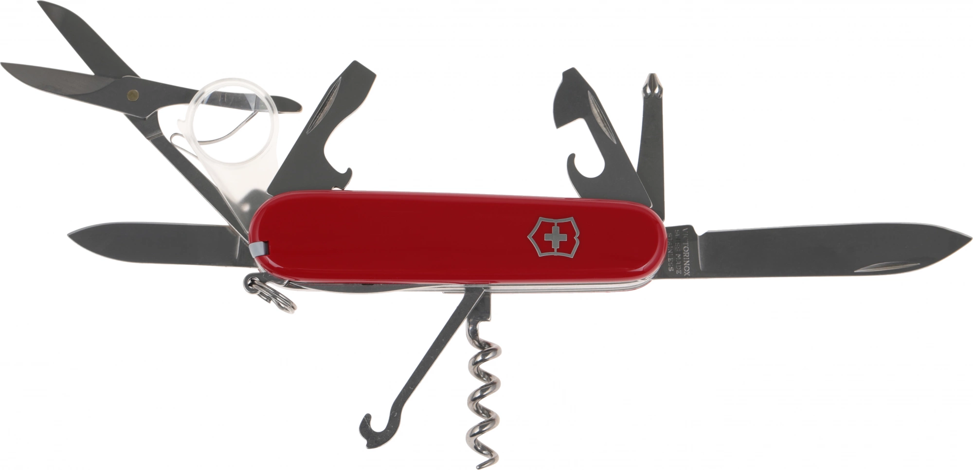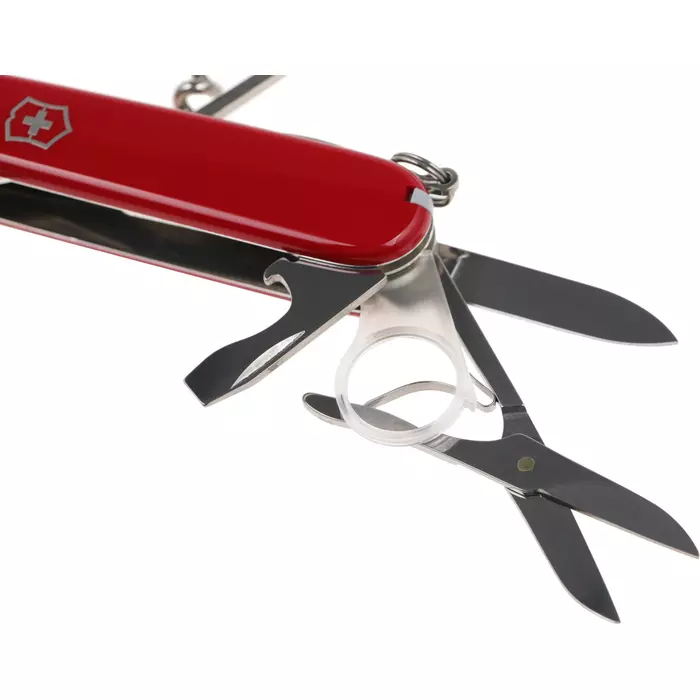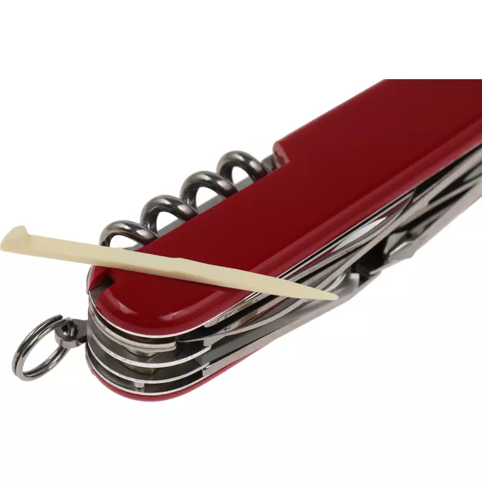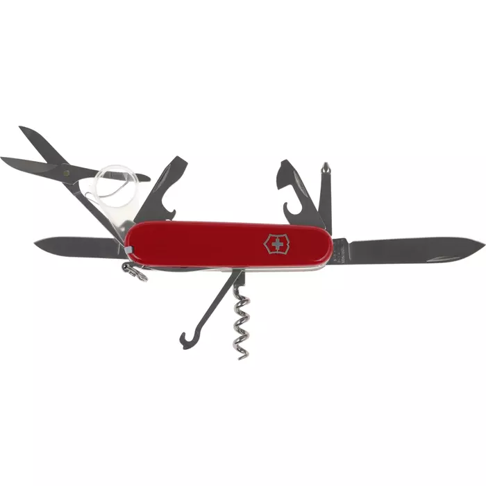 | Список функций | Нож, малый нож, консервный нож, открывалка, штопор, 3 отвертки, сниматель изоляции, шило(кернер), пинцет, кольцо для ключей, крючок, ножницы, лупа 8х, зубочистка. |