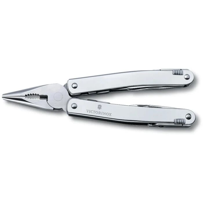 Многофункциональный инструмент SWISSTOOL SPIRIT X имеет 26 функций: острогубцы с: кусачками для тонк. и мягк. проволоки твердостью до 40 HRC, для тв. проволоки; отвертка 2 мм., консервный нож с: отверткой 3 мм., открывалка для бутылок с: отверткой 6 мм., фомкой, инструментом для сгибания проволоки.
