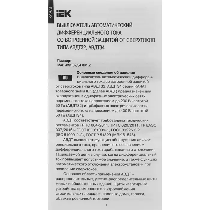 | Тип | Автоматический выключатель дифф. тока |