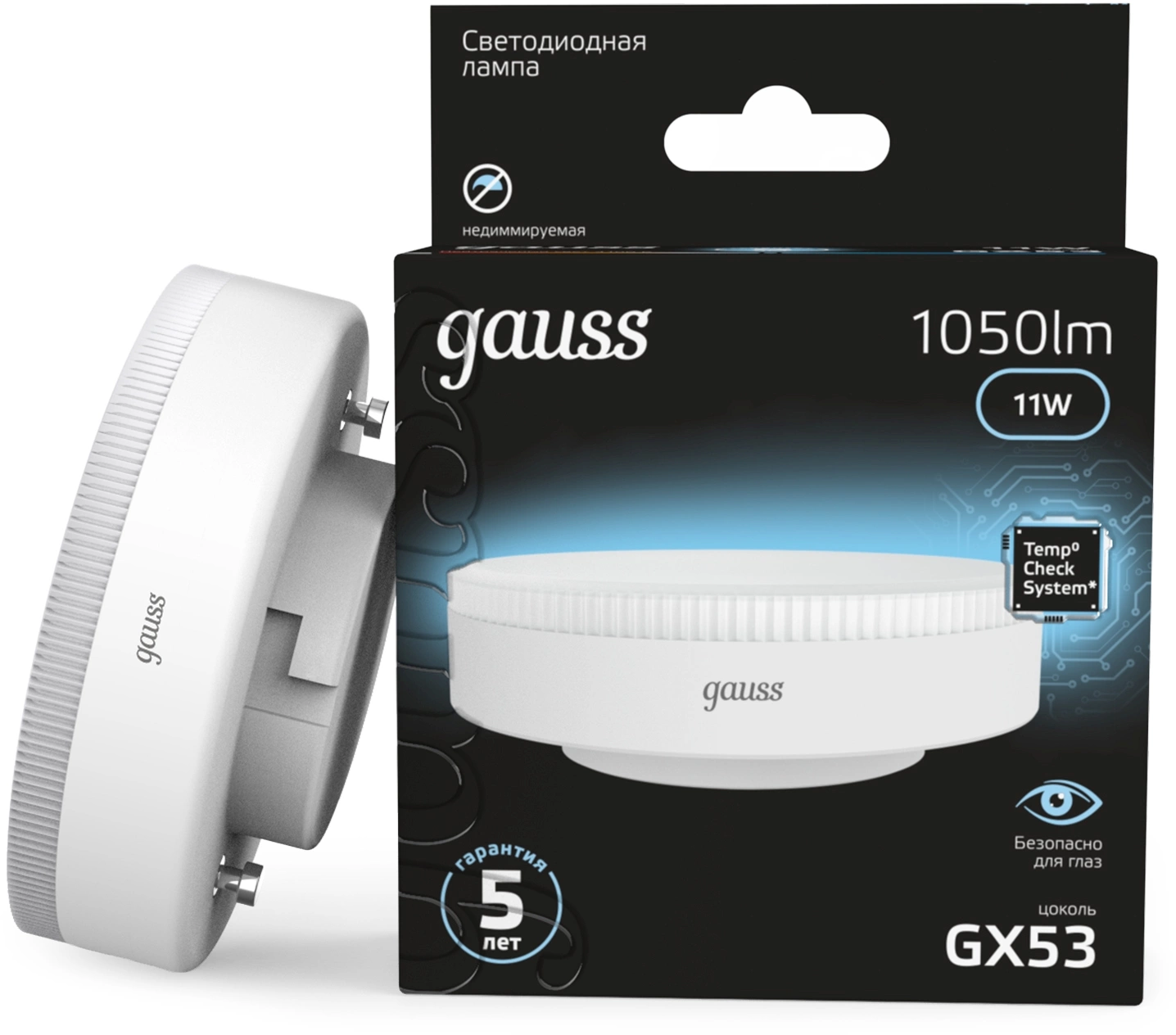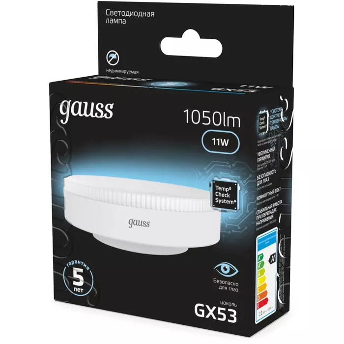Лампа светодиодная Gauss 11Вт цок.:GX53 таблетка 220B св.свеч.бел.нейт. [108008211]