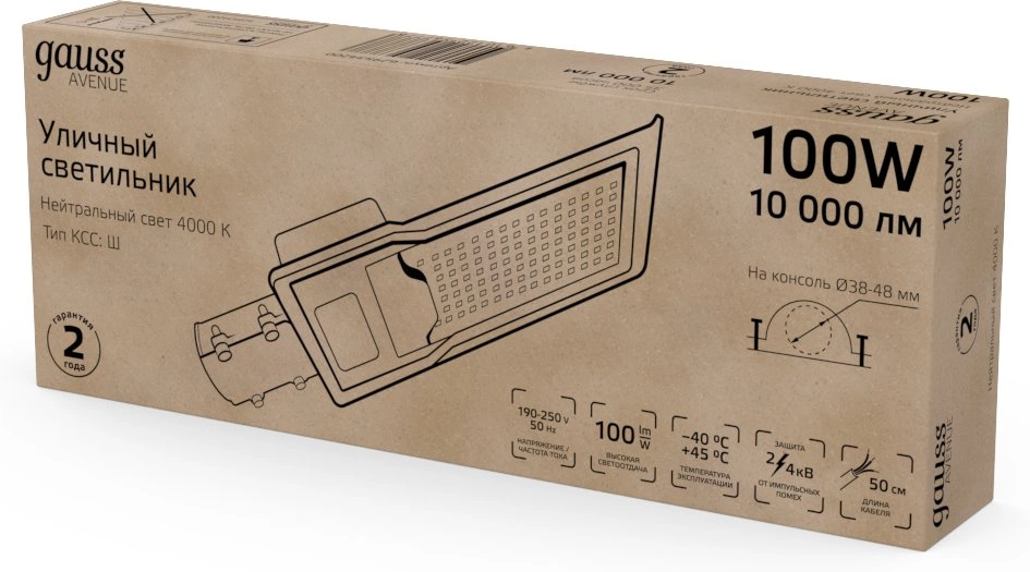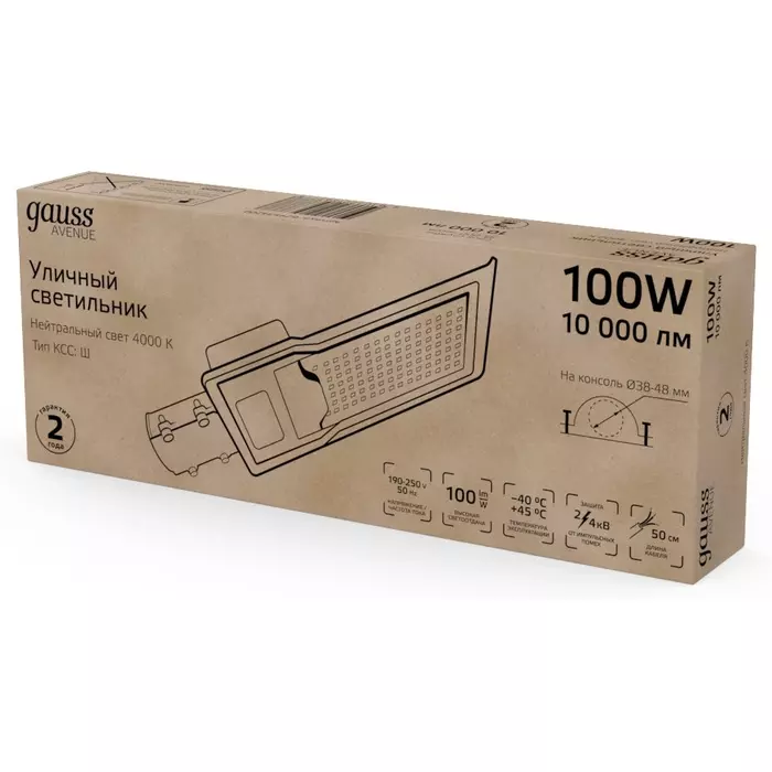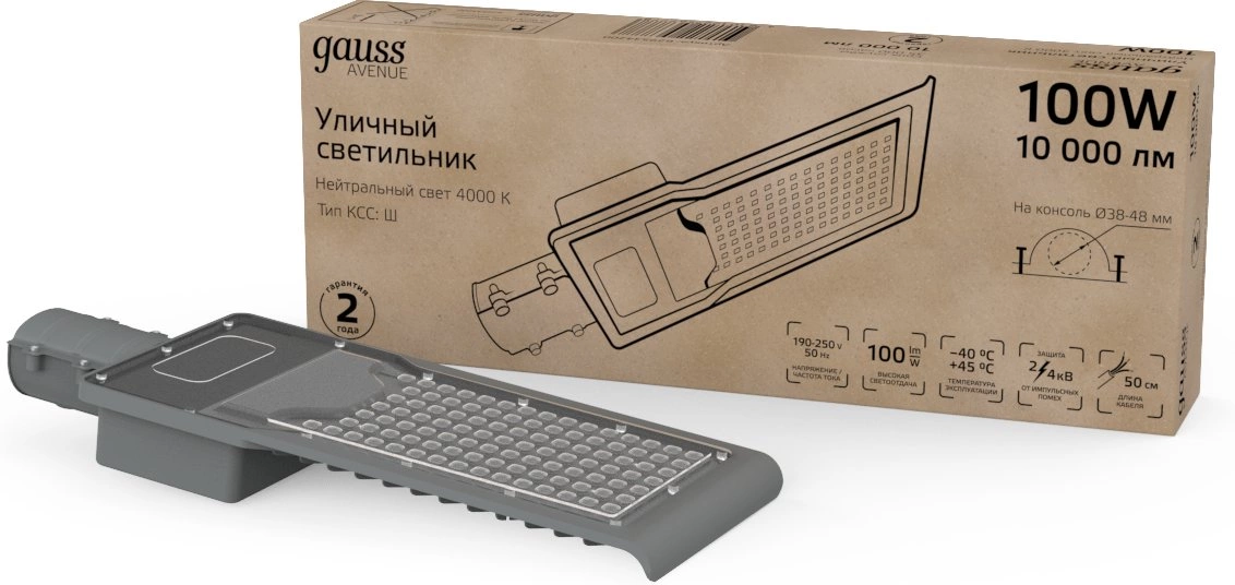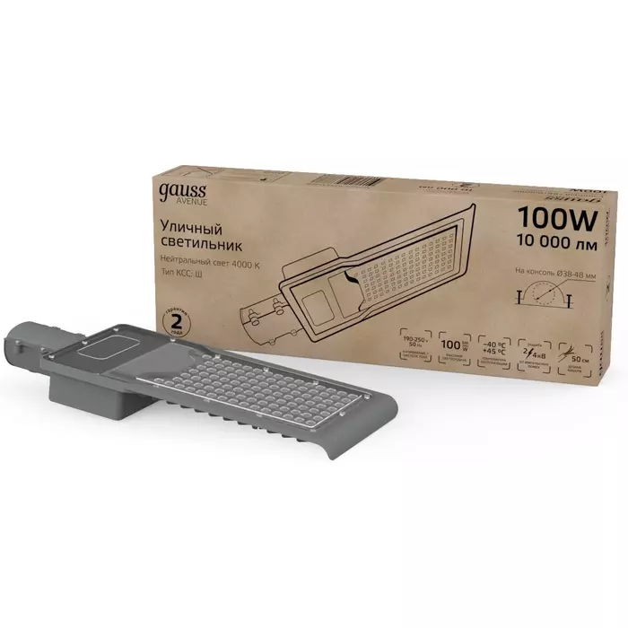 Уличные консольные светодиодные светильники Gauss модели Avenue предназначены для наружного освещения дворов, парковых аллей, прогулочных дорожек, придомовых территорий, автостоянок, площадей, улиц и дорог с малой и средней интенсивностью движения.