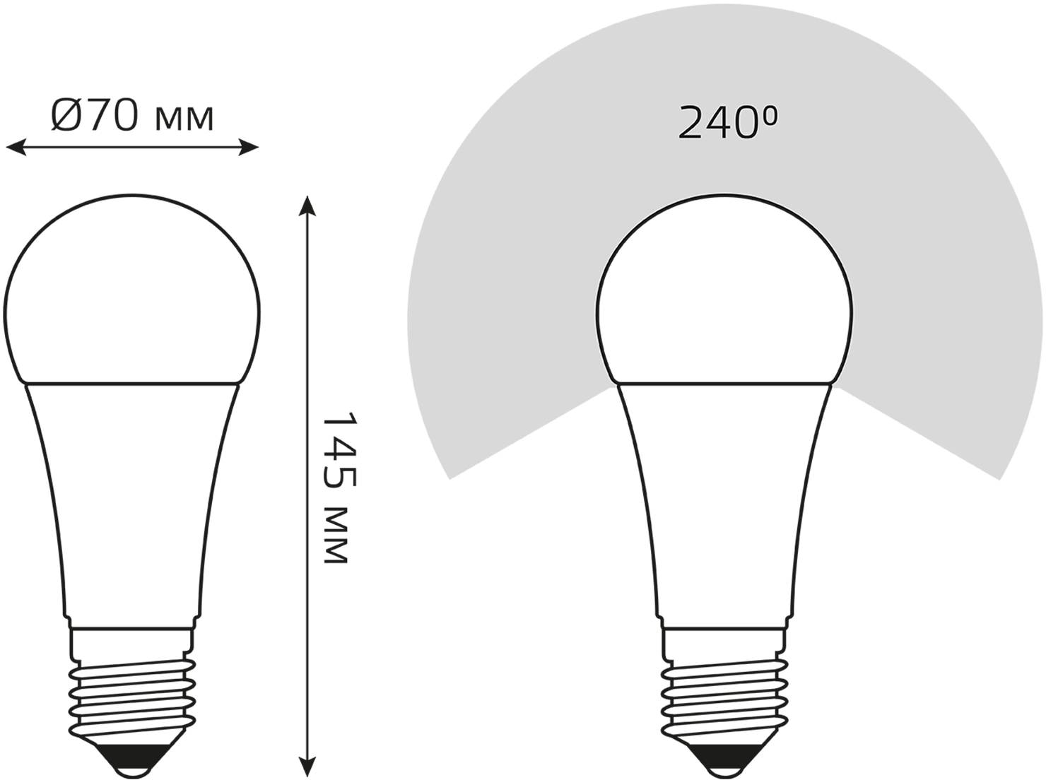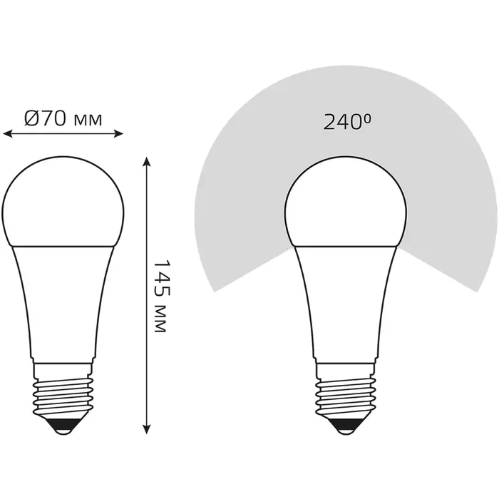| Угол светового пучка | 240 ° |