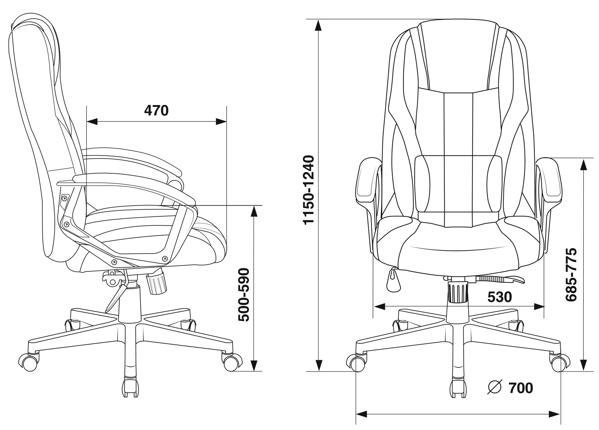 | Высота с подлокотниками MIN | 685 мм |