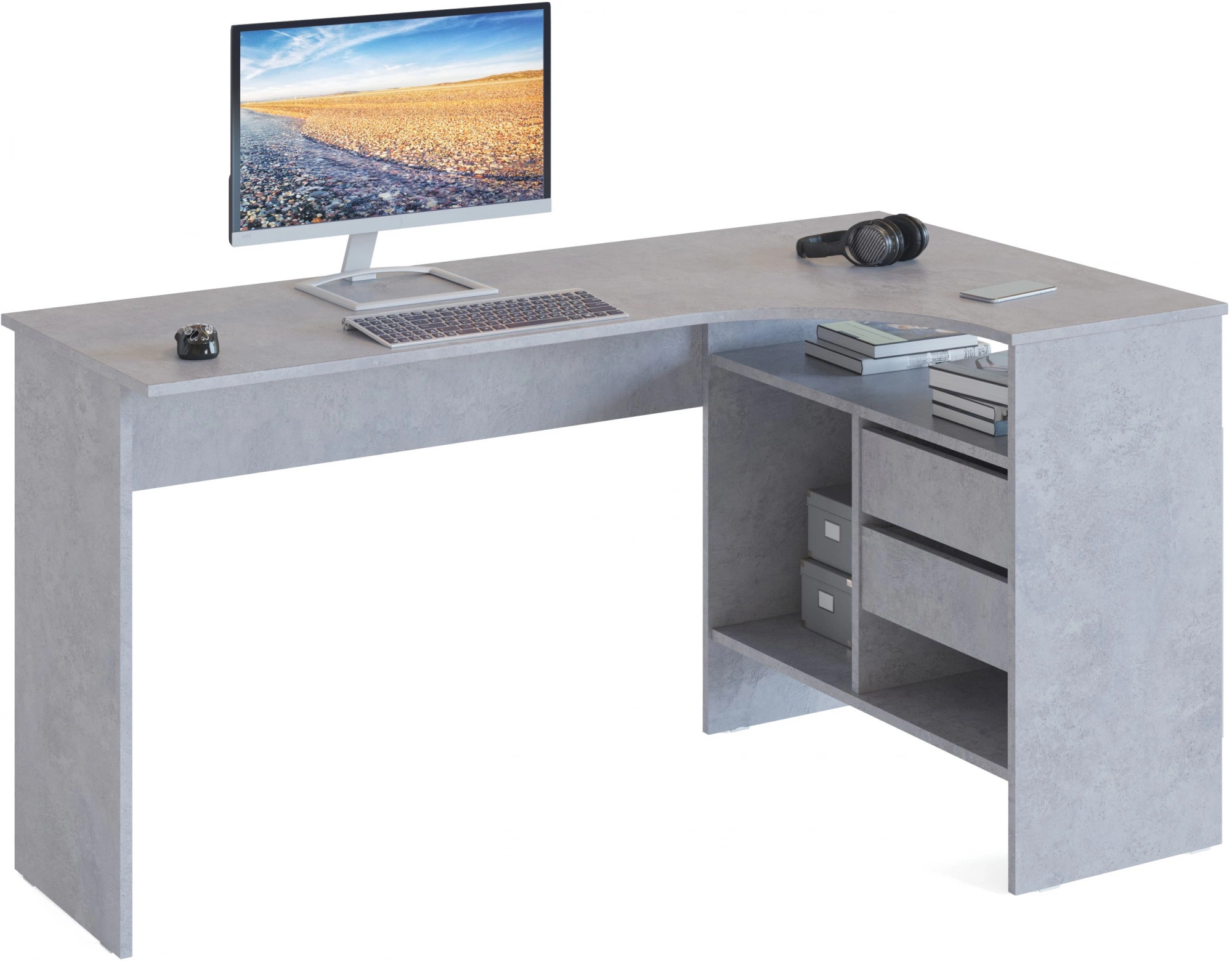 Стол для компьютера СОКОЛ СПм-25 П столешница ЛДСП бетон 145x74x81см [00-00011531]