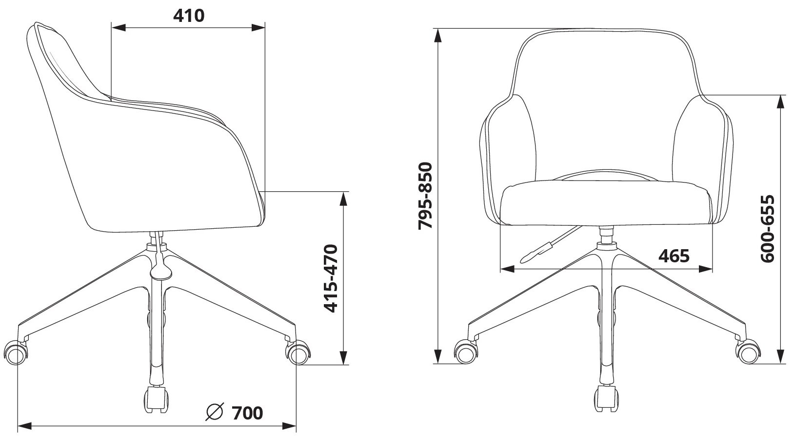 | Высота с подлокотниками MIN | 600 мм |