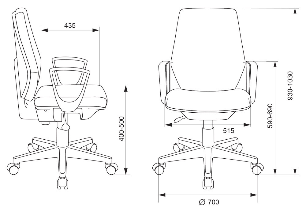 | Высота кресла / стула MIN | 930 мм |