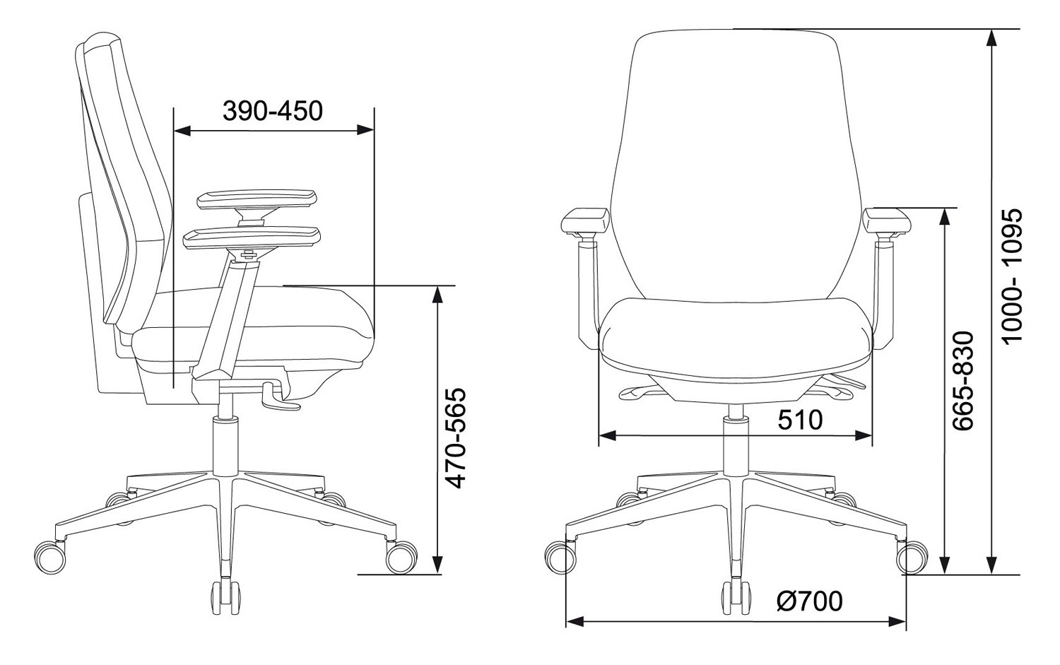 | Высота с подлокотниками MIN | 665 мм |