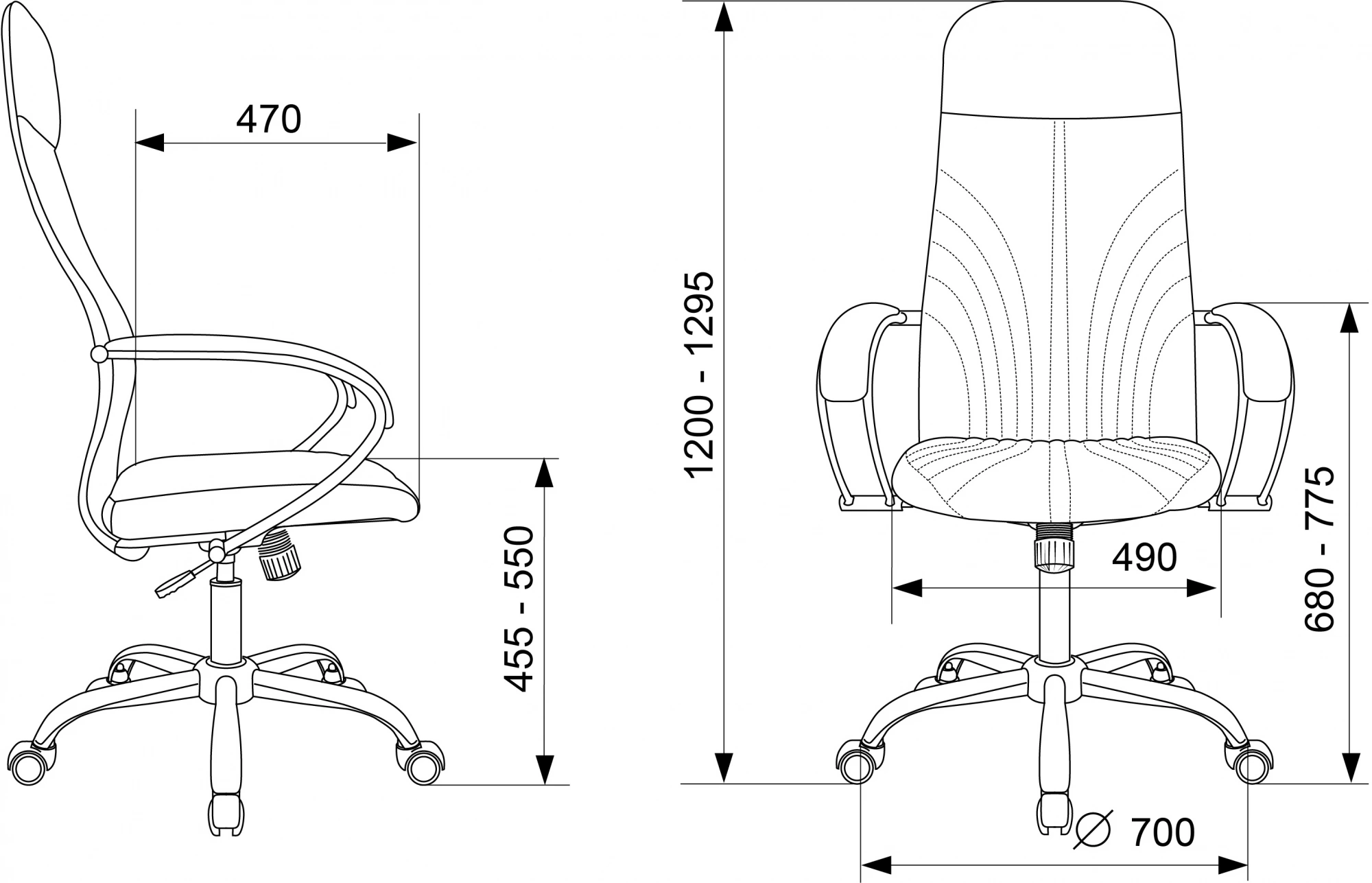 | Высота с подлокотниками MIN | 680 мм |