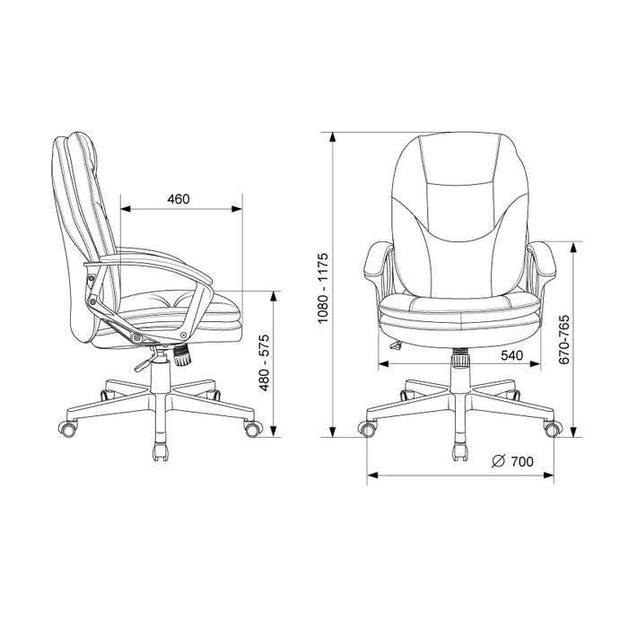 | Высота с подлокотниками MIN | 670 мм |
