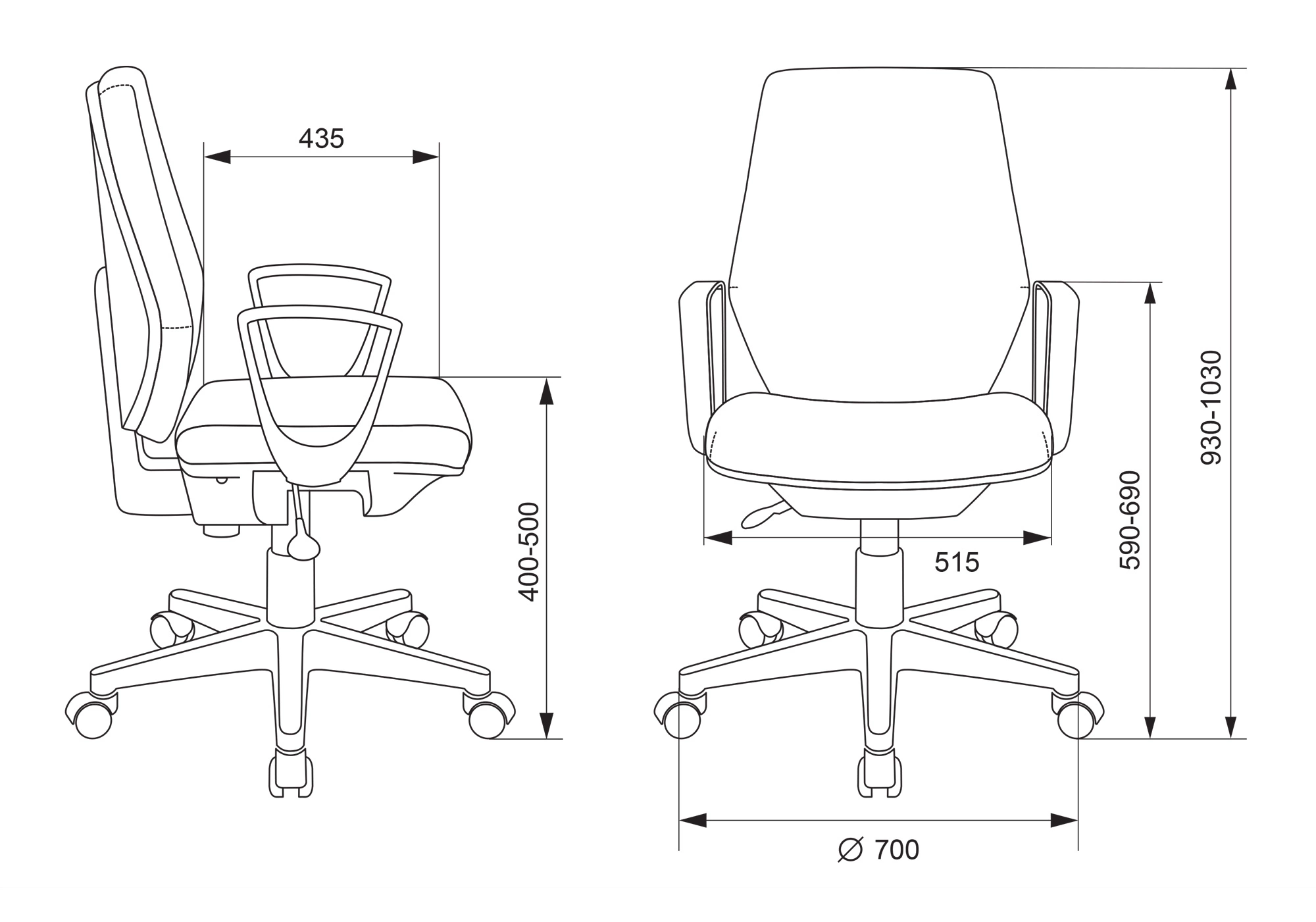 | Высота с подлокотниками MIN | 590 мм |