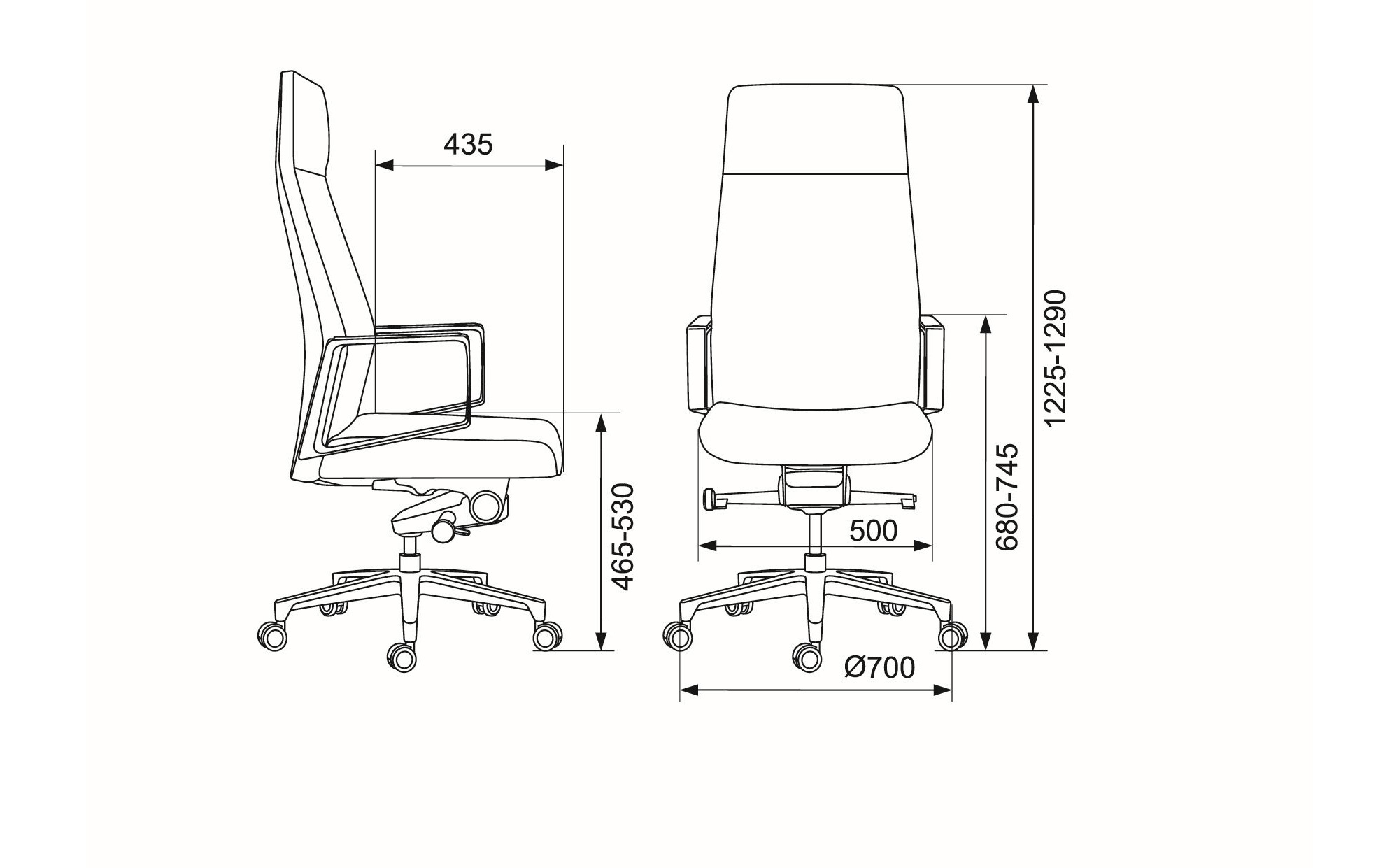 | Высота кресла / стула MIN | 1225 мм |