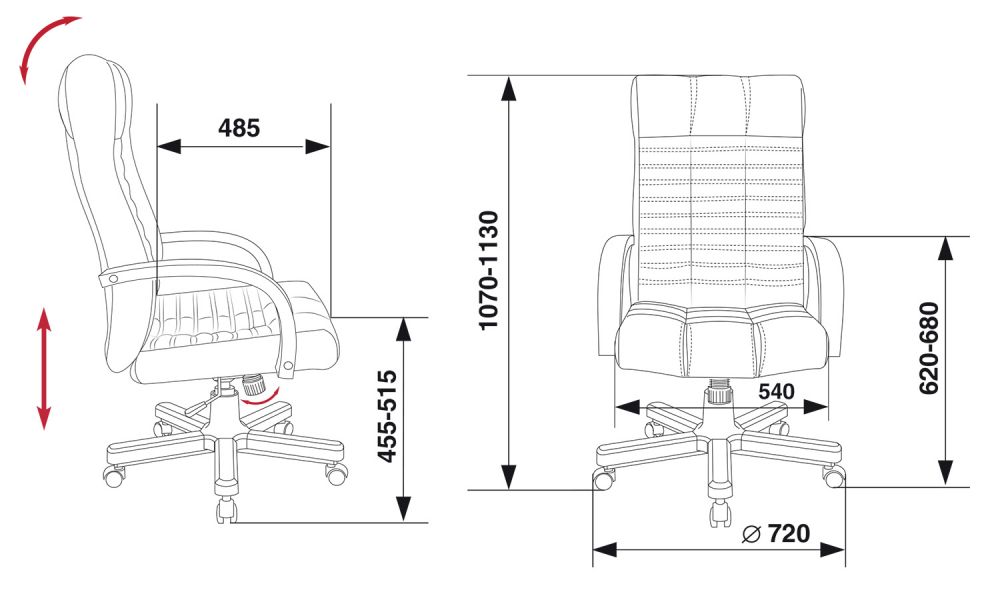 | Высота кресла / стула MIN | 1070 мм |