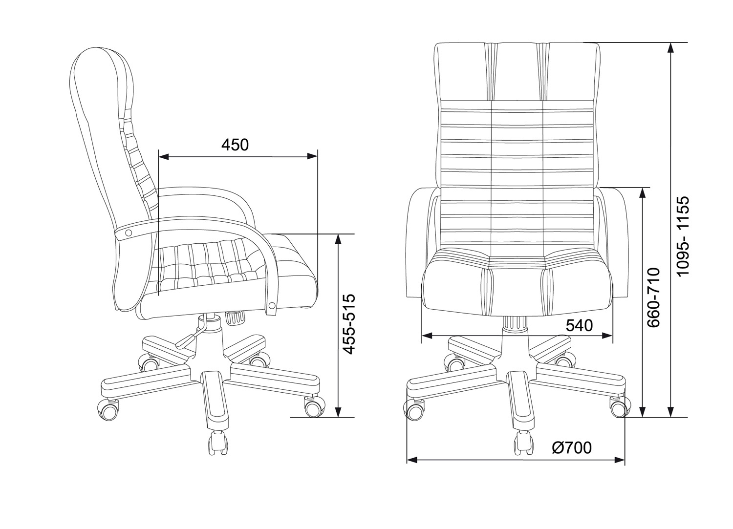 | Высота кресла / стула MIN | 1095 мм |