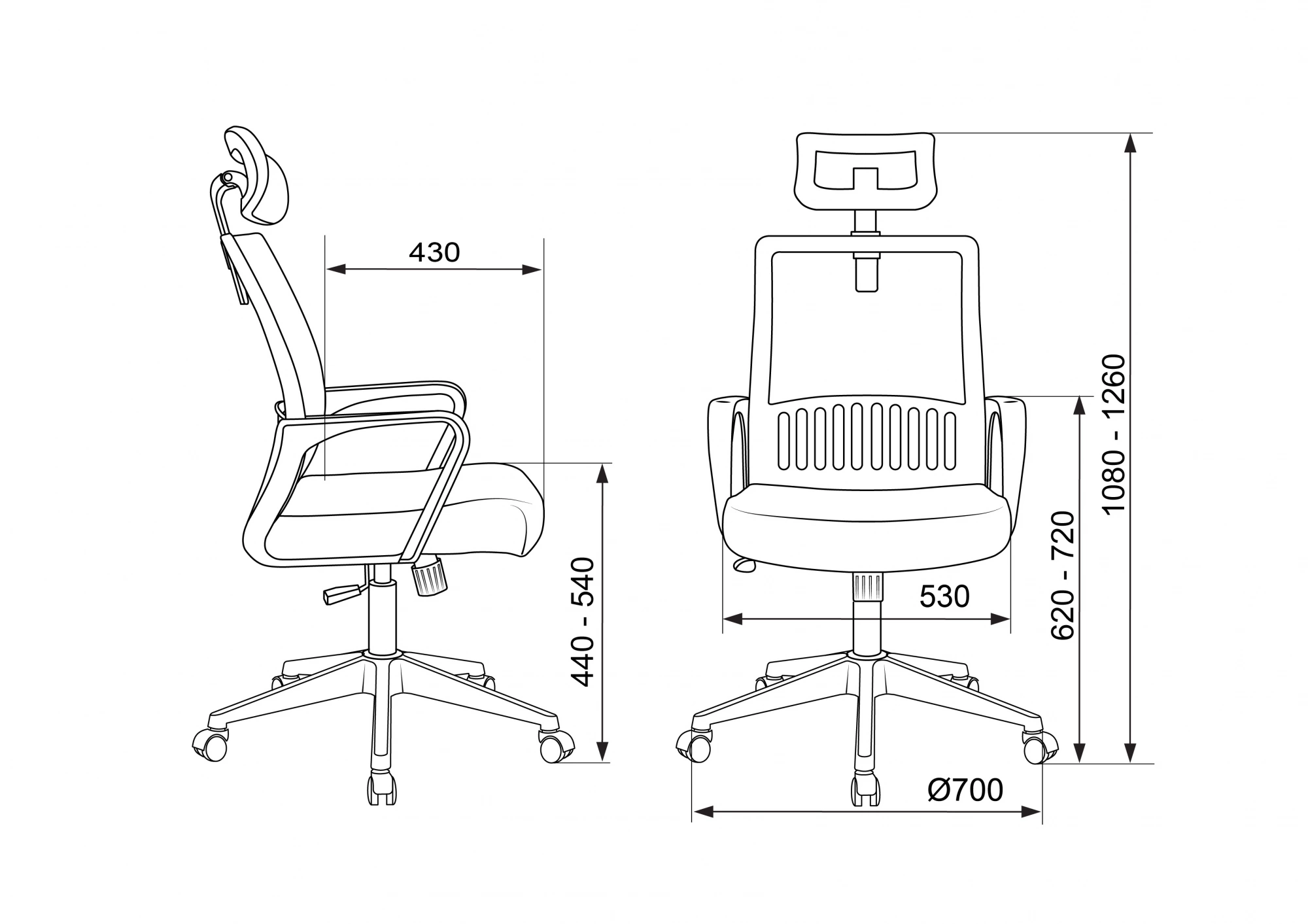 | Высота кресла / стула MIN | 1080 мм |