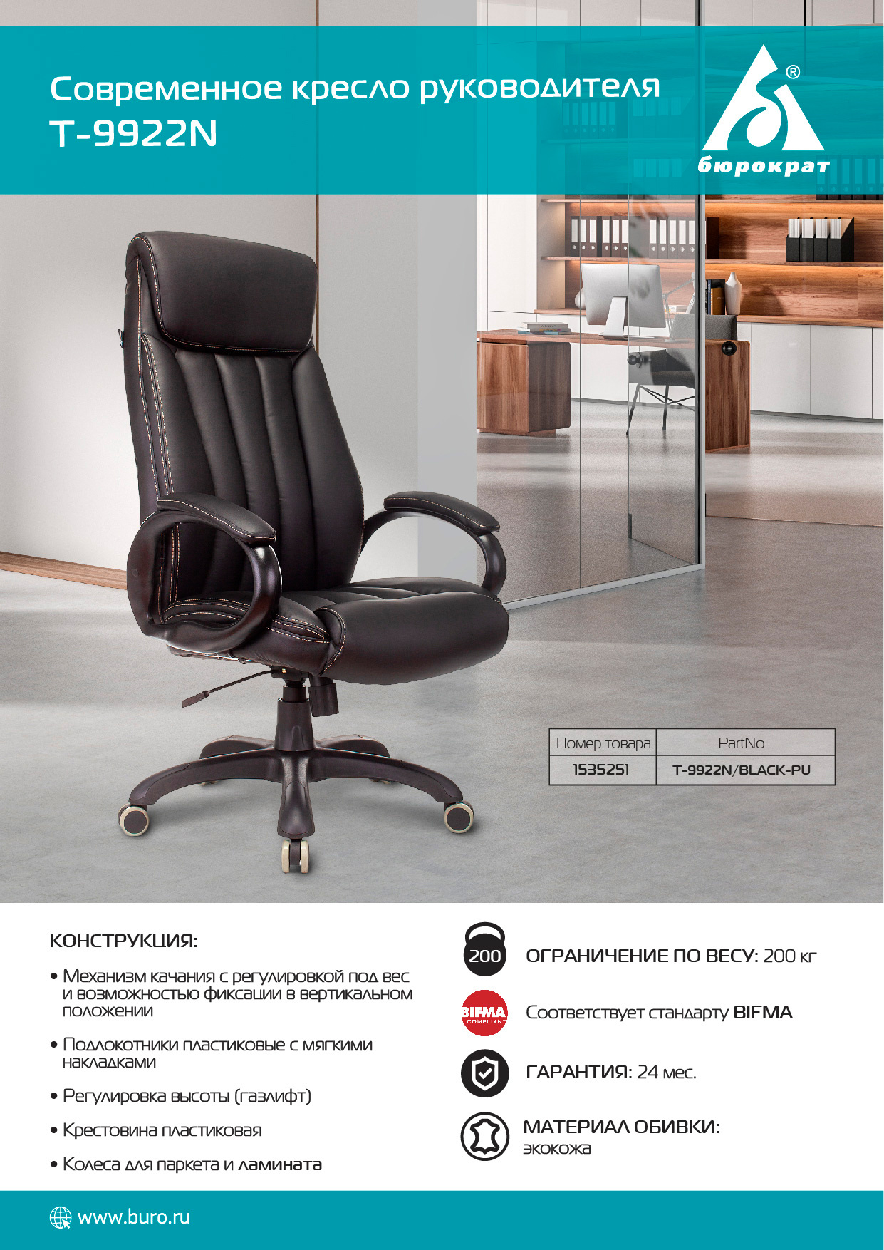 Описание Бюрократ T-9922N/BLACK-PU