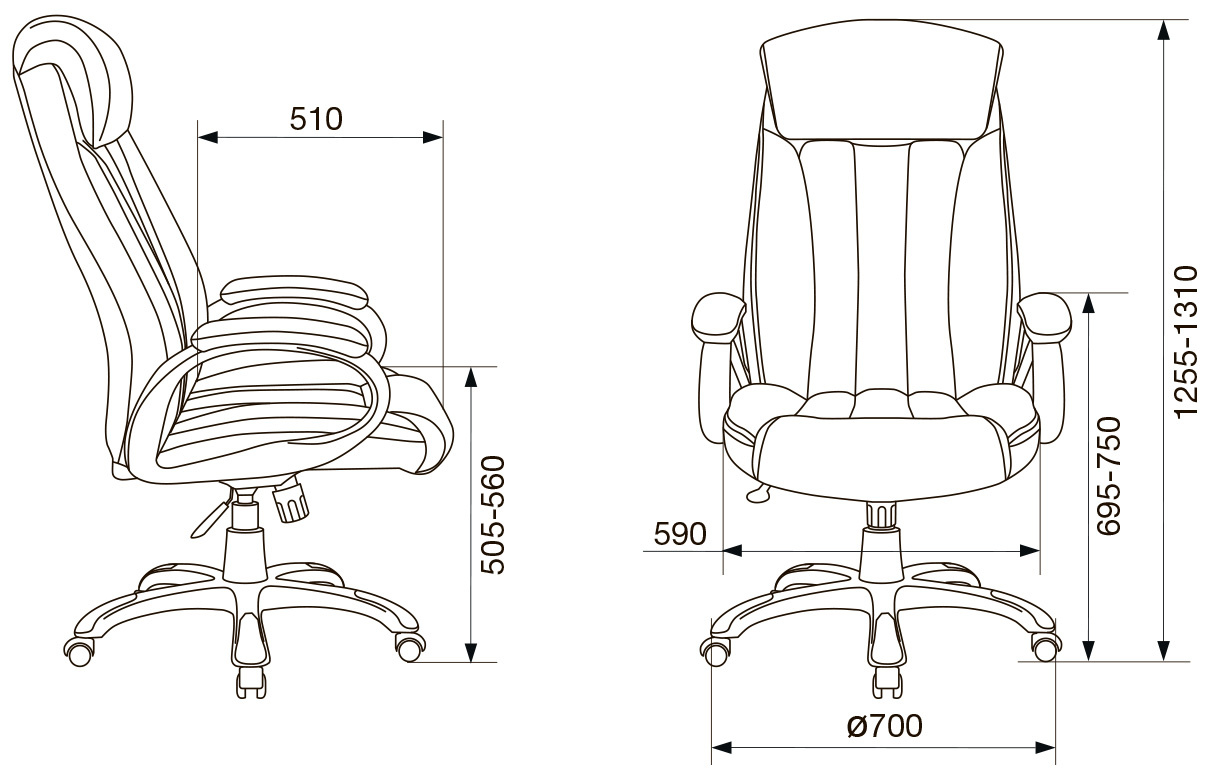| Высота с подлокотниками MIN | 695 мм |