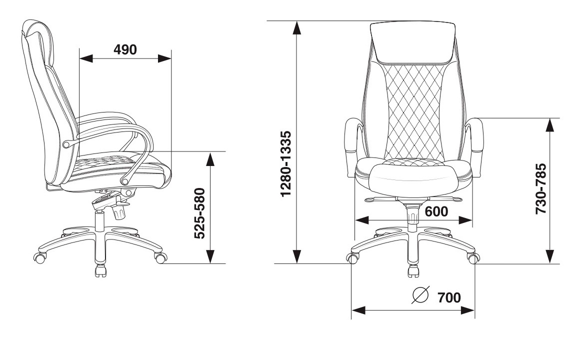 | Глубина сиденья MIN | 490 мм |