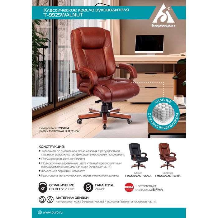 Наличие товара Бюрократ T-9925WALNUT/BLACK