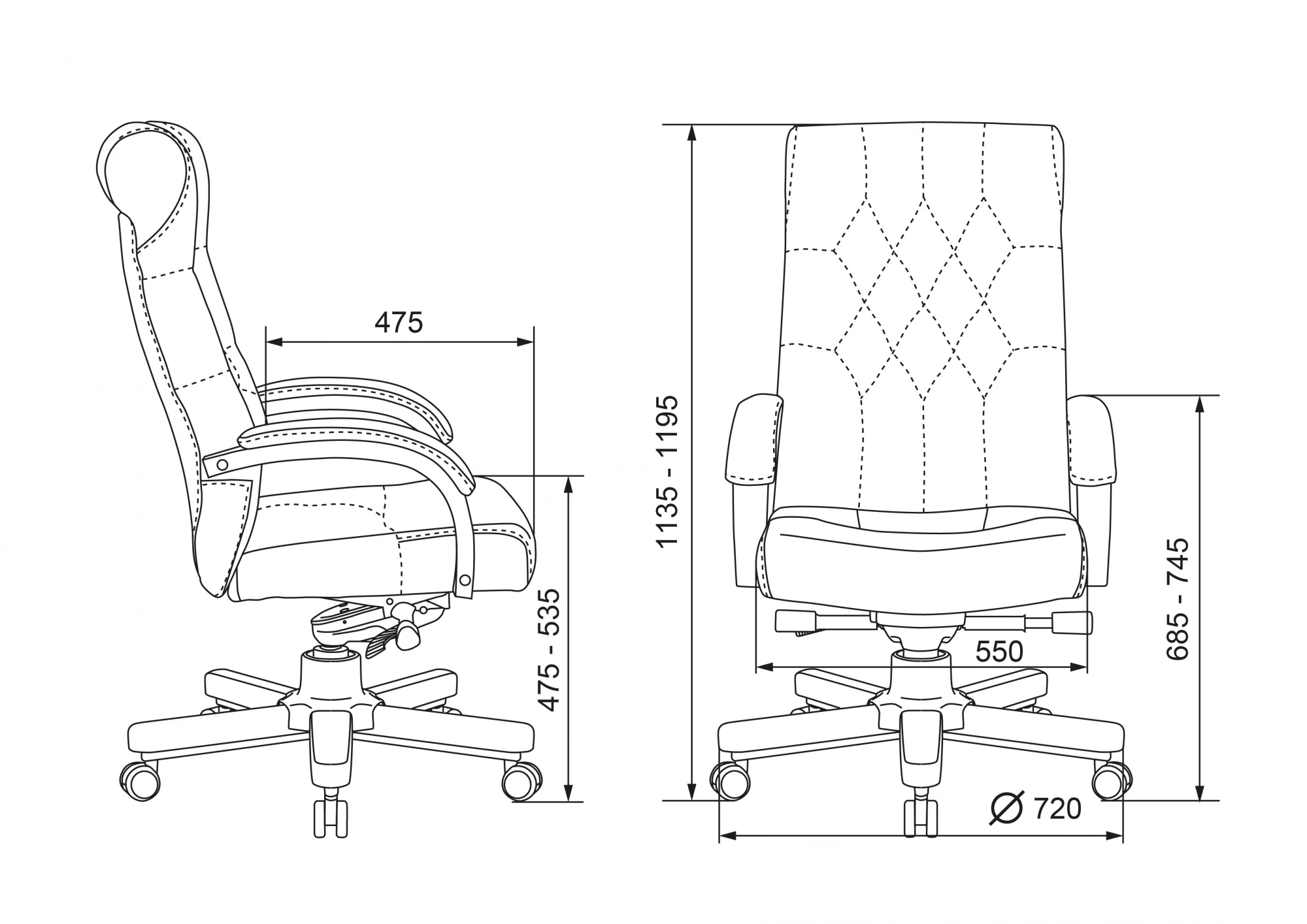 | Высота кресла / стула MIN | 1135 мм |