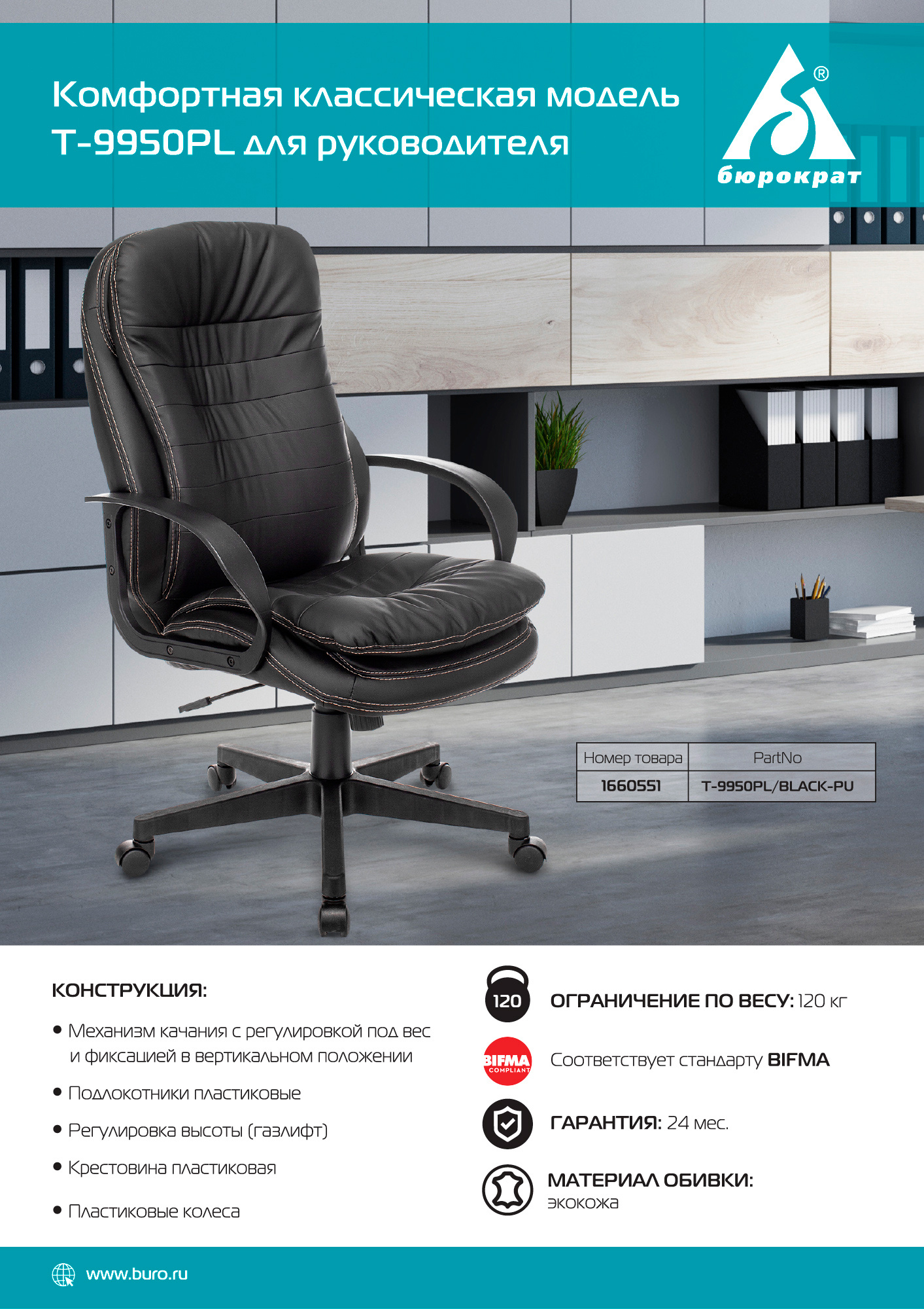 Наличие товара Бюрократ T-9950PL/BLACK-PU