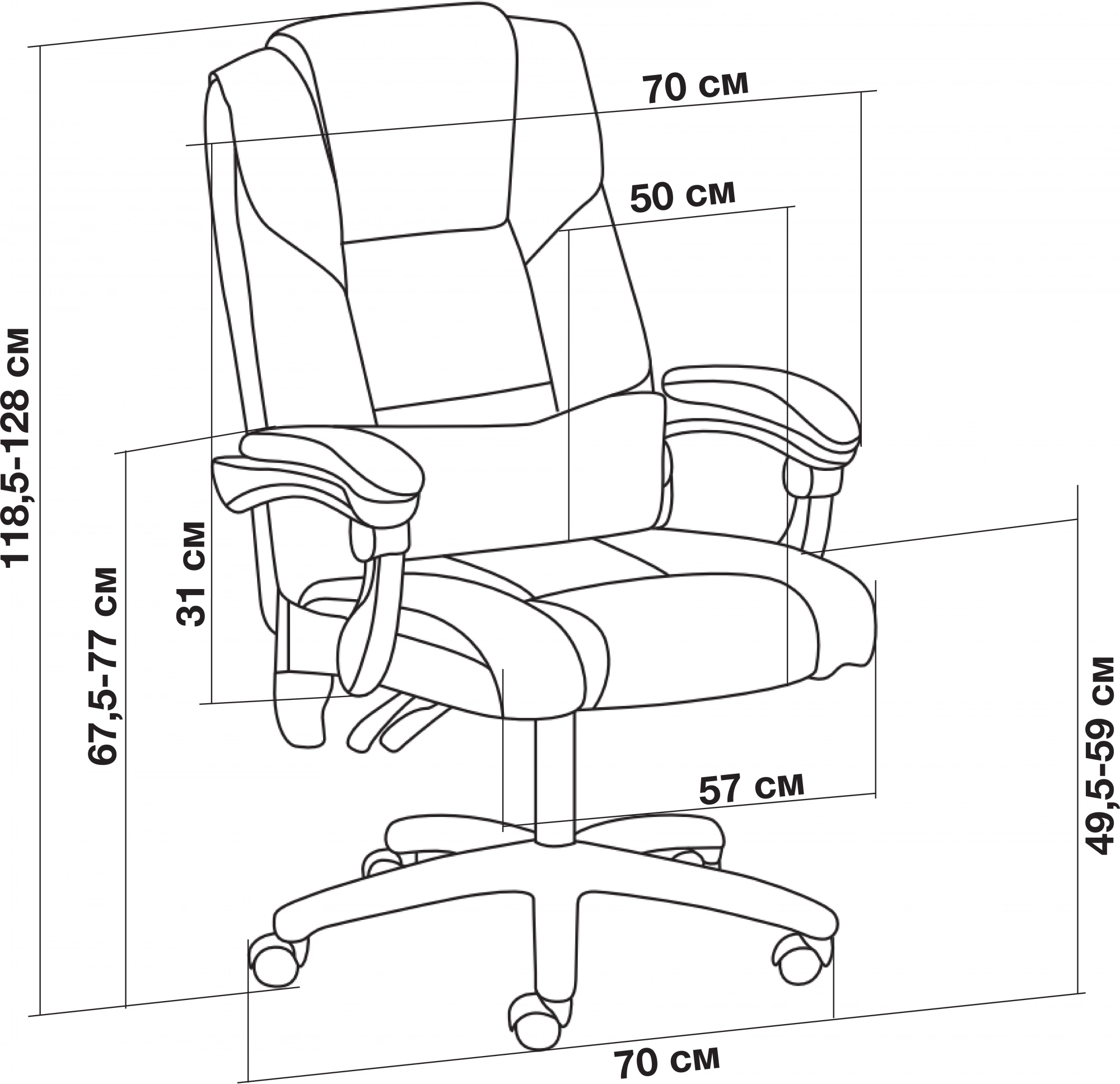 | Ширина с подлокотниками | 690 мм |