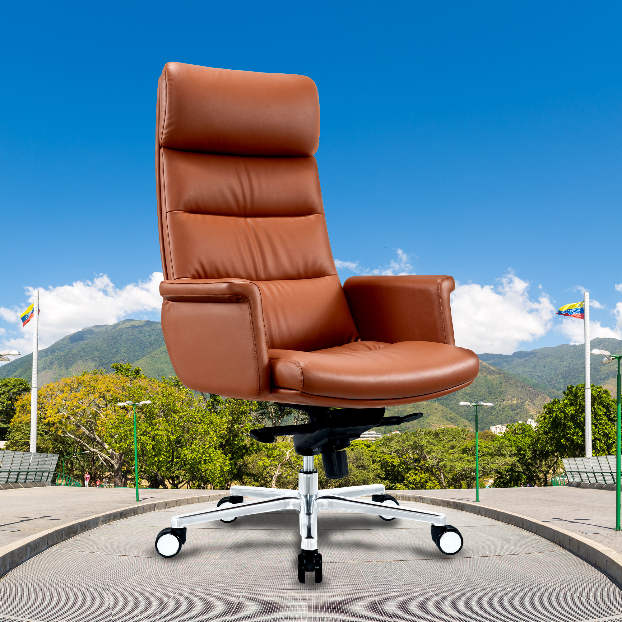 Кресло CS-LBR-CARACAS с обивкой из натуральной кожи теплого коричневого оттенка отсылает своим видом к моделям известных итальянских дизайнеров. Кресло оборудовано механизмом качания с фиксацией в 4 положениях. CS-LBR-CARACAS имеет полностью обитые фиксированные подлокотники, которые образуют единое целое с сиденьем. Надежная и элегантная крестовина из полированного алюминия удачно дополняет классический вид модели.
