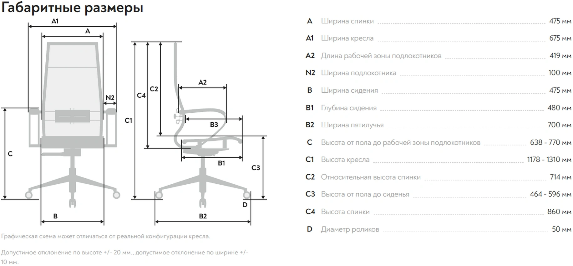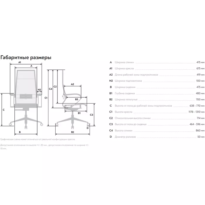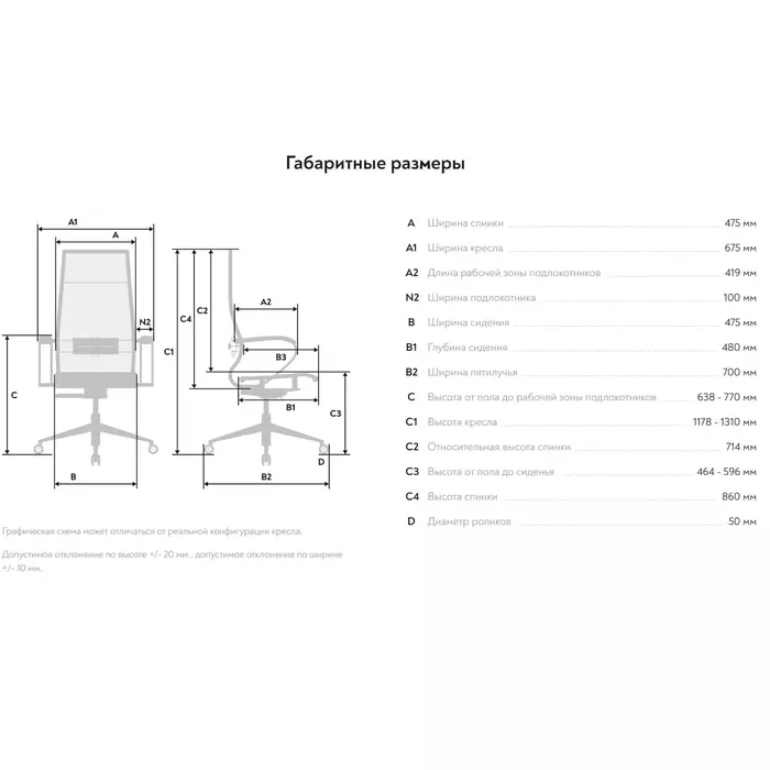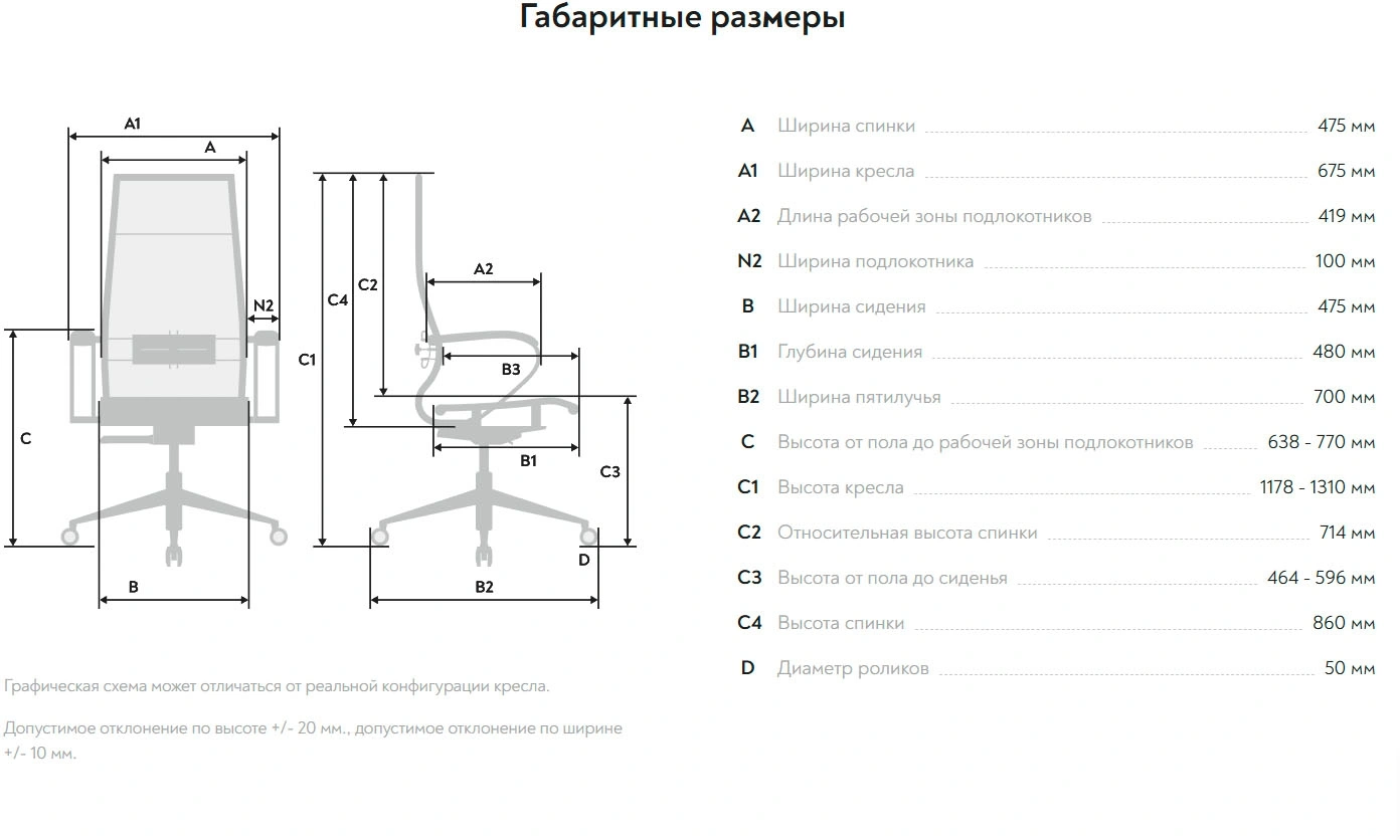 | Ширина спинки | 475 мм |