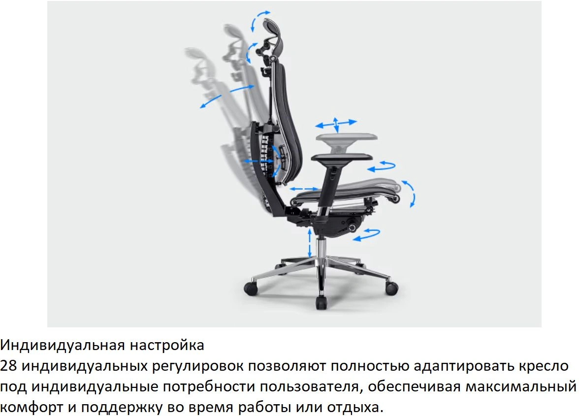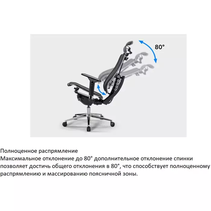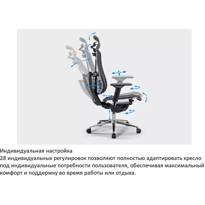 | Регулировка | высоты (газлифт), высоты подголовника, высоты сиденья (без спинки), глубины сиденья, положения подлокотников, поясничной области |
