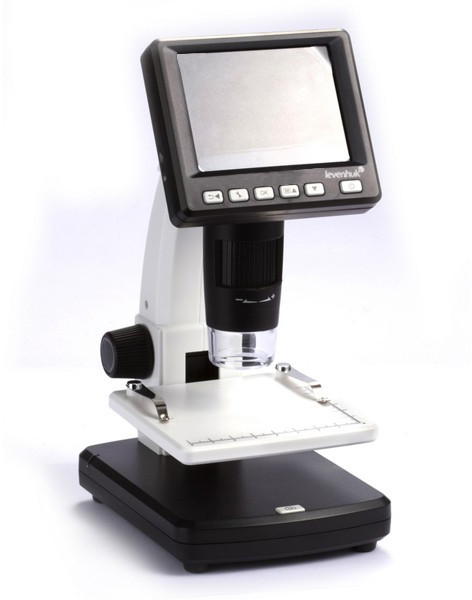 Цифровой микроскоп с цветным ЖК-дисплеем (3,5") и камерой 5 Мпикс. Увеличение от 20x до 500x. С помощью кнопок на корпусе можно настраивать яркость и контрастность изображения, а также регулировать экспозицию и цветовой баланс. С помощью микроскопа можно делать фото и видео. Для хранения данных можно использовать карту памяти microSD объемом до 32 ГБ, есть возможность подключения к компьютеру (используется стандартный USB-порт) и перенесения данных на его жесткий диск. Для освещения объектов используются 8 светодиодов с регулировкой яркости. Микроскоп работает от литий-ионного аккумулятора (заряд хватает на 5 часов), может питаться от компьютера.