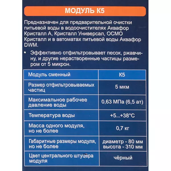 Сменный картридж для механической предочистки воды в системах Аквафор Кристалл. Замена картриджа занимает не более минуты.