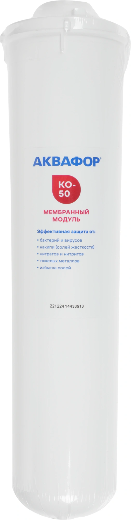Сменный очищающий модуль с обратноосмотической мембраной повышенной производительности в неразборном корпусе, для сверхглубокой очистки от вредных примесей, в том числе бактерий и вирусов, нитритов и нитратов, а также солей жесткости, и умягчения воды.