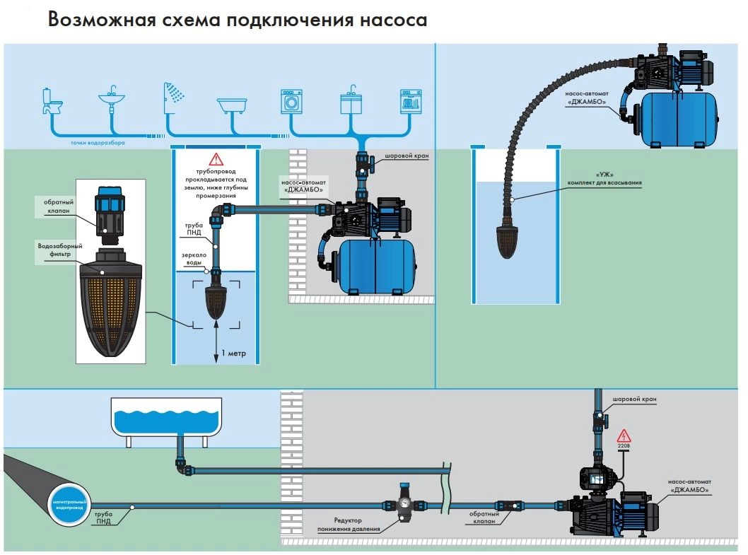 | Особенности | Поверхностные насосы-автоматы «ДЖАМБО» Комфорт |