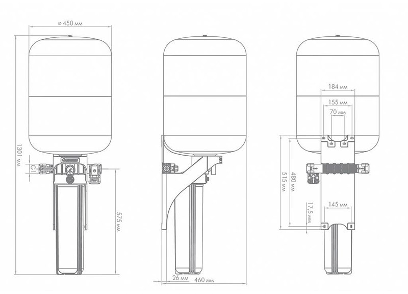 - Объём гидроаккумулятора: 100 л