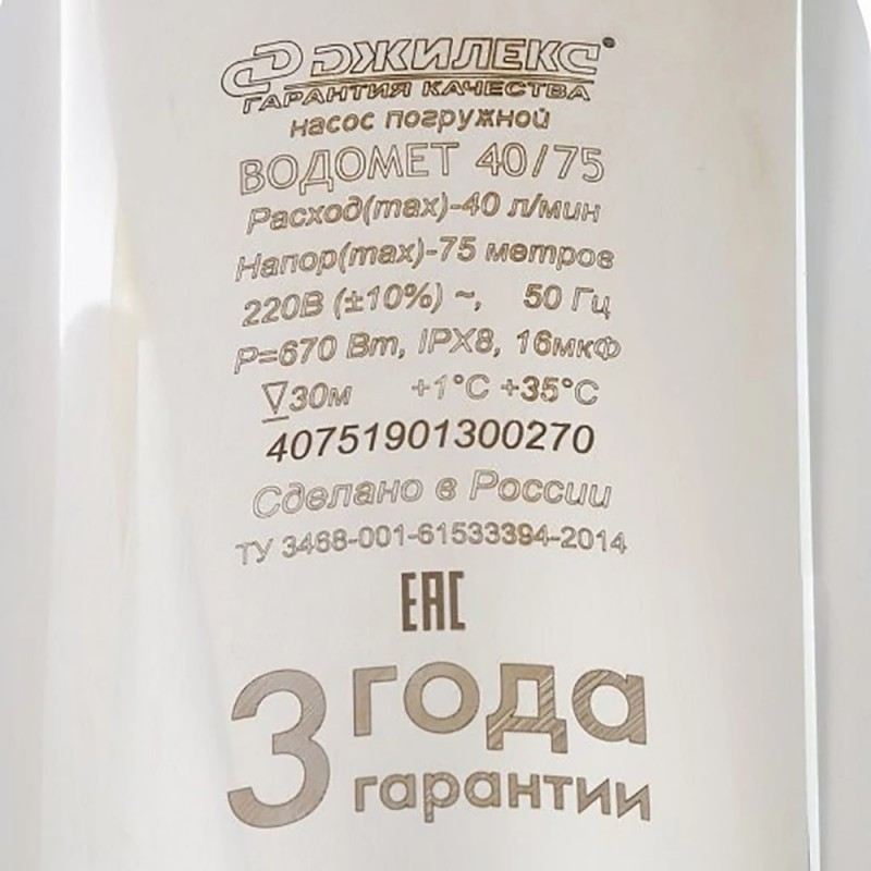 - Скважинный насос Джилекс Водомет ПРОФ 40/75 имеет производительность 2,4 м3 и напор 75 метров, диаметр корпуса составляет 98 мм. Используется специально для глубоких скважин с малым дебетом