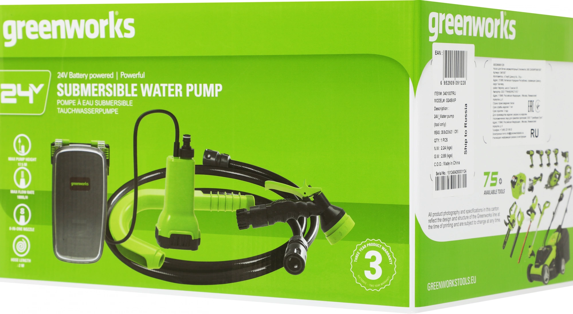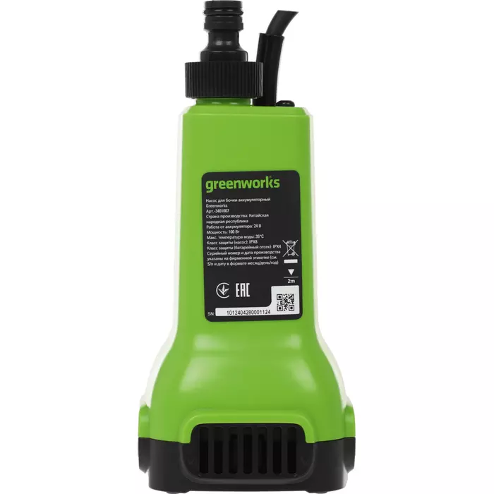 | Особенности | Время работы от аккумулятора емкостью 4 Ач составляет до 50 мин, при этом можно перекачать до 1500 л воды. |