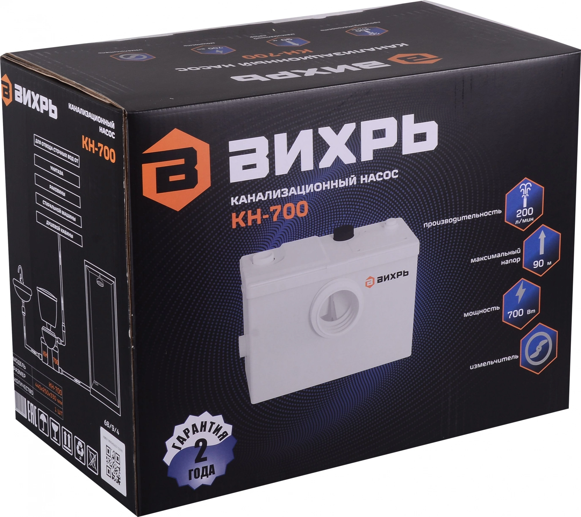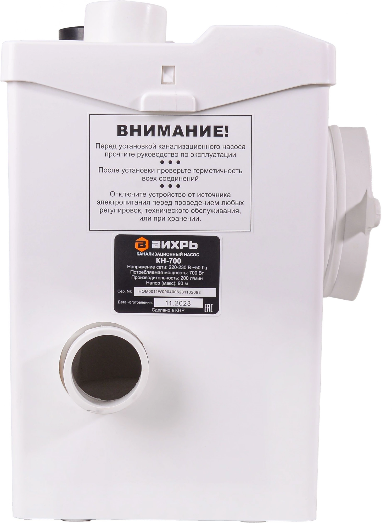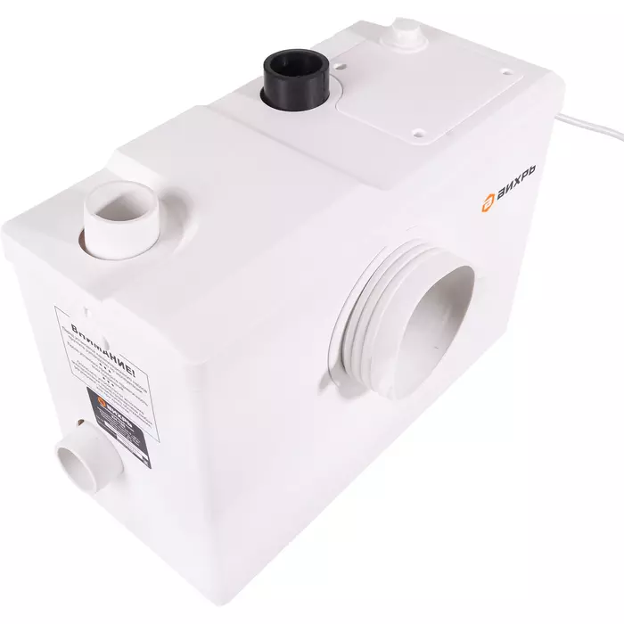 | Особенности | Максимальный напор по вертикали 9 м. Максимальный напор по горизонтали 90 м. Медная обмотка двигателя. Работает полностью в автоматическом режиме. Наличие ножей предотвращает засор. Вход под туалет. Количество входом под душ, раковину и т.д. - 2 |