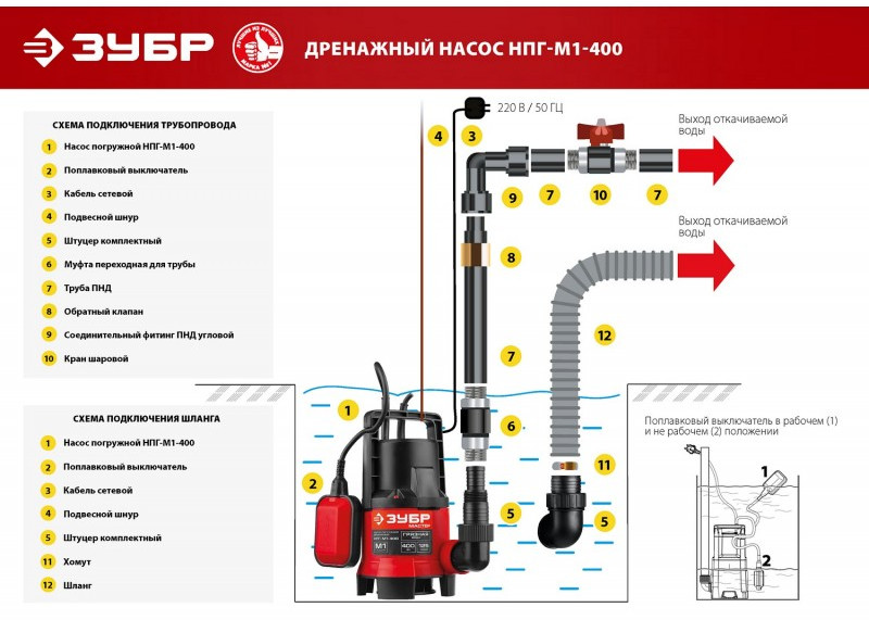 - Поплавковый выключатель обеспечивает автоматическое вкл/выкл при изменении уровня воды