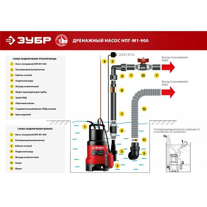 - Поплавковый выключатель обеспечивает автоматическое вкл/выкл при изменении уровня воды